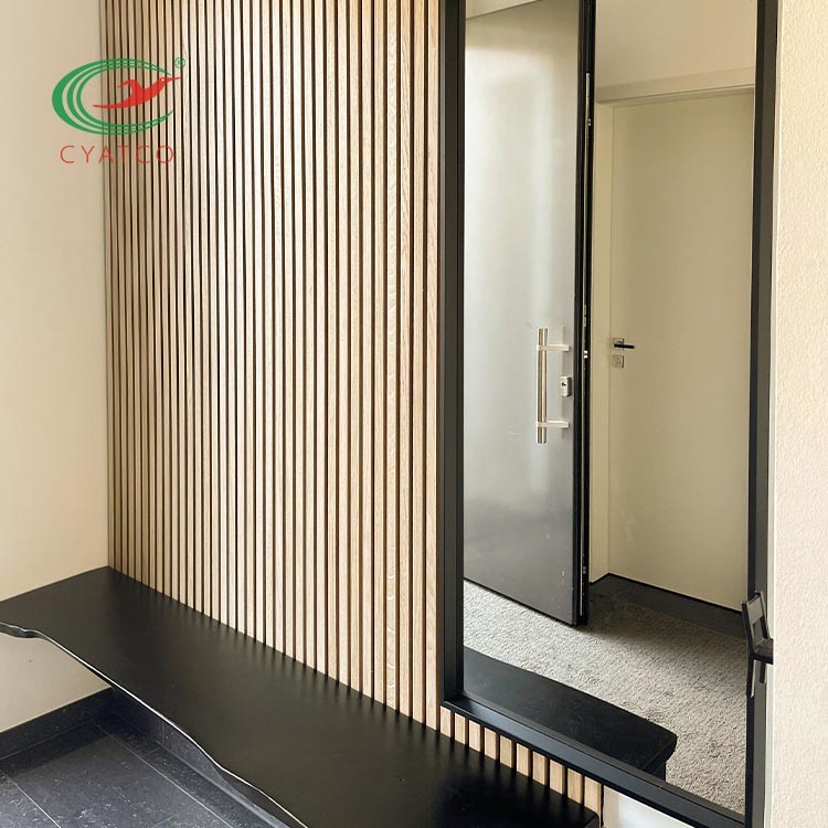 Ten produkt to pięknie zaprojektowany dekoracyjny panel ścienny i sufitowy z listew drewnianych, który charakteryzuje się wysokiej jakości właściwościami akustycznymi.Panele można łatwo nakładać na ściany i sufity, zarówno do użytku domowego, jak i komercyjnego.