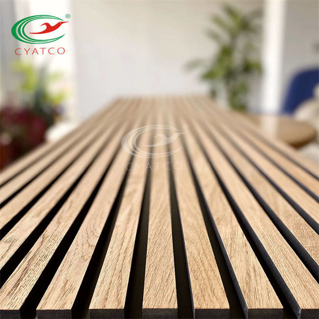 Ściana wewnętrzna Naturalny dąb Poliester Akustyczne panele ścienne Mdf Drewniany fornir Panel listwowy
